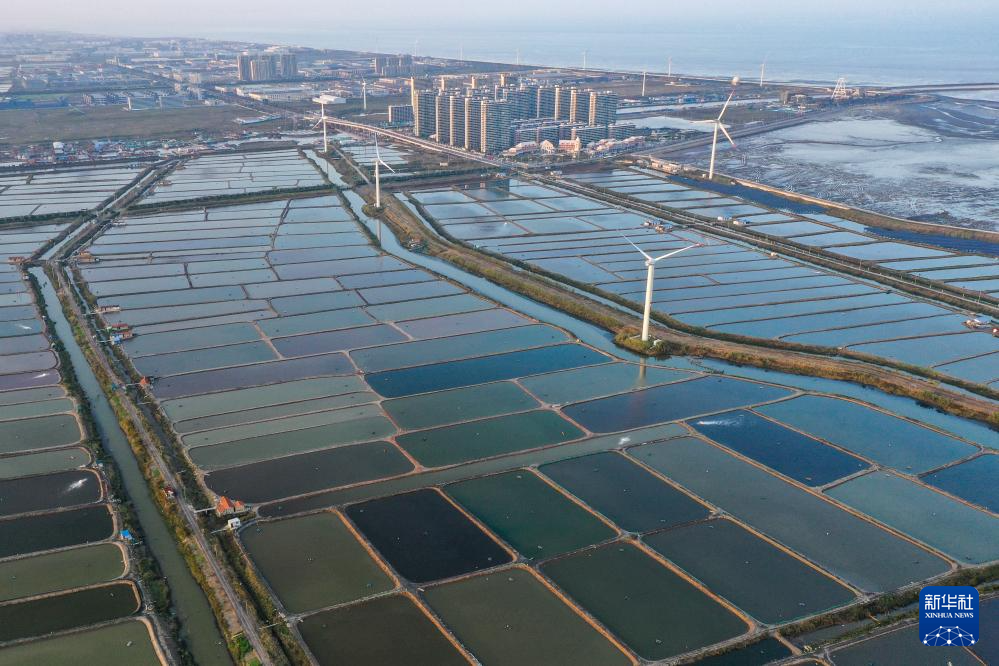 这是11月3日拍摄的启东沿海万亩虾蟹养殖基地(无人机照片)。