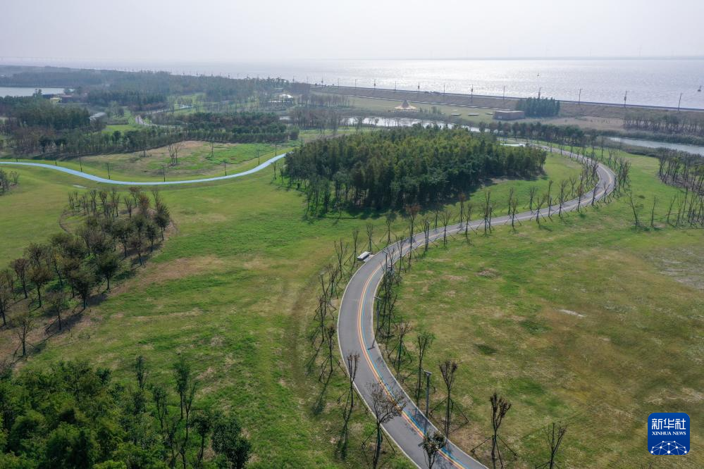 这是11月4日拍摄的启东市滨江生态绿廊美丽景色(无人机照片)。