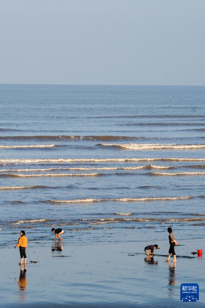 游客在启东市黄金海滩休闲游玩(11月3日摄)。