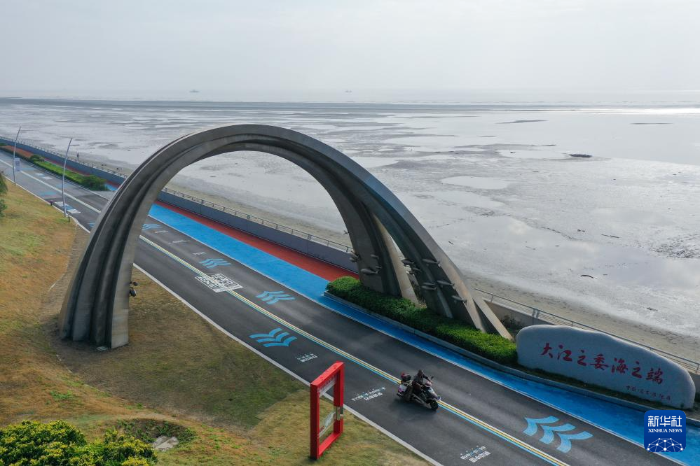 这是11月4日拍摄的启东市圆陀角风景区江海景观大道(无人机照片)。