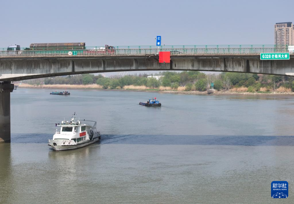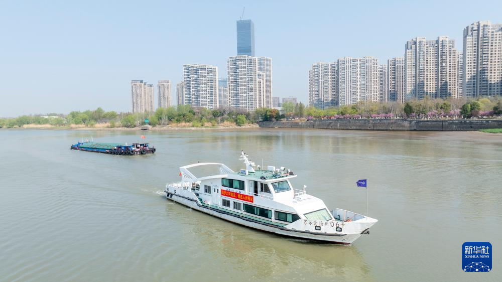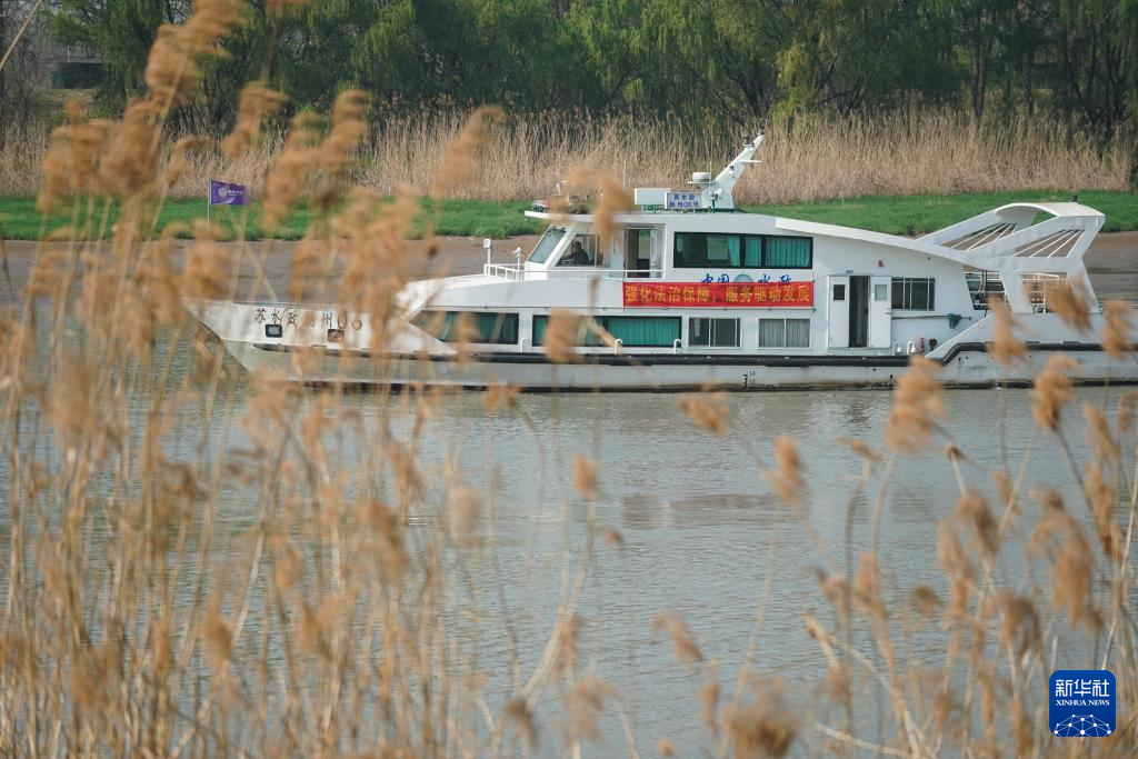 3月26日,江都水政执法人员驾驶执法艇在南水北调东线源头水域开展巡河工作。