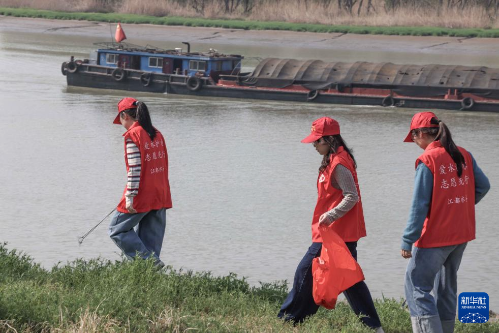 3月26日,扬州市江都区水务局大禹青年志愿服务队在南水北调东线源头水域岸边巡河并清理垃圾。