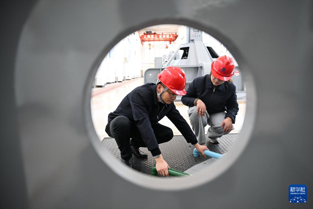 3月25日,江都水利枢纽工作人员在抽水站主机层巡视检查。