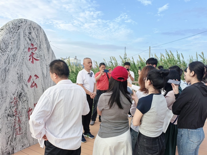 徐振理真正开始深入研究宋公堤,始于多年后的抗日遗址普查与史料征集工作。“我第一次站在宋公堤上,想起老人讲的军民筑堤往事,突然就懂了。这段历史不能被遗忘,我得接住这份责任。”从那以后,徐振理就成了“红色追光者”,考证修堤英烈事迹,将课堂“搬”到堤上,带领党员干部、学生与新四军后人重走宋公堤,用脚步丈量,用初心感悟,让大家在沉浸式体验中汲取精神力量。