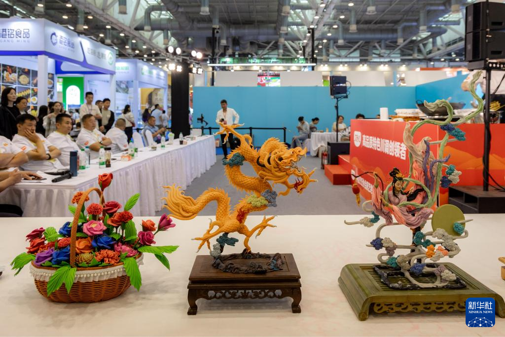 10月18日拍摄的在厨艺绝技绝活展示会上展出的面塑作品。