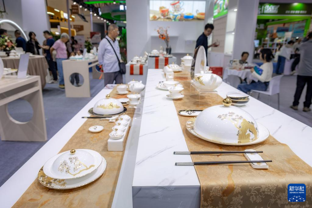 10月18日在博览会上拍摄的陶瓷餐具。