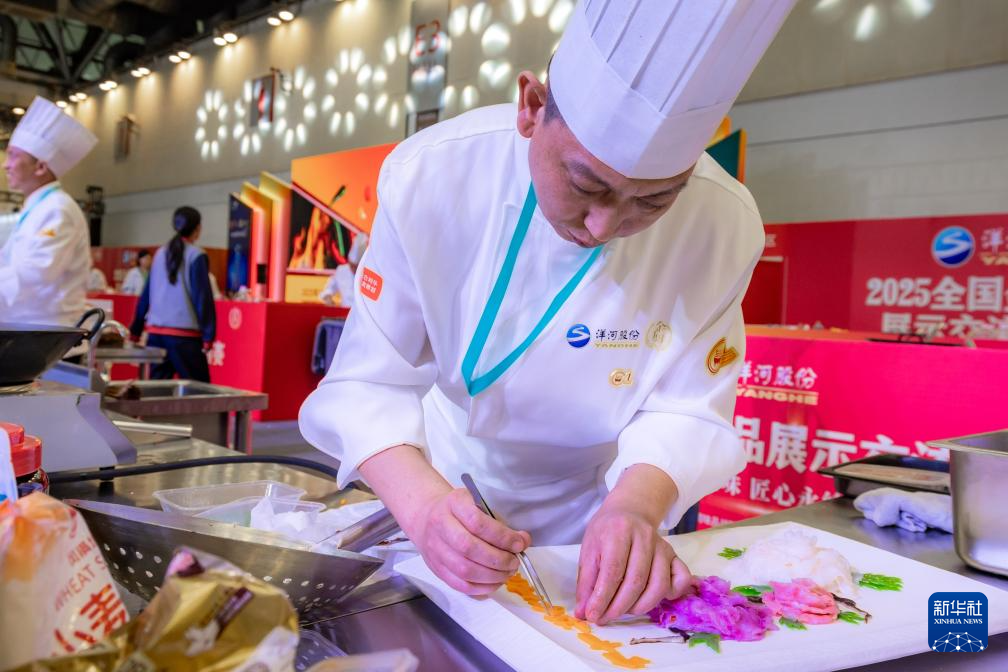 10月18日,参赛选手在2025全国金厨菜品展示交流邀请赛上竞技。