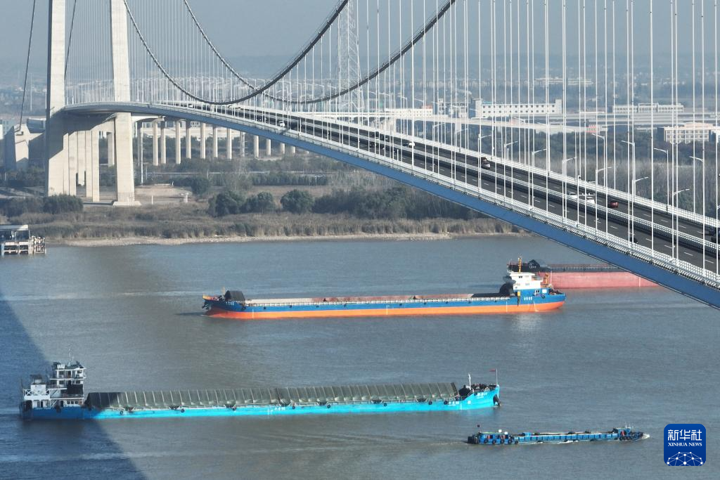 11月26日拍摄的南京新生圩长江大桥(无人机照片)。