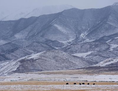 图为晨光洒向了江西武功山绿意盎然的万亩高山草甸以及山顶上的各色帐篷,风景秀美。 肖南波 摄