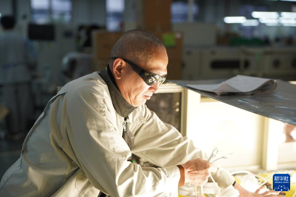 工人在瑞金市得邦照明有限公司生产车间内工作(1月21日摄)。