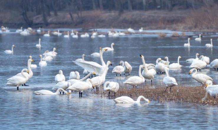 辽宁朝阳:大凌河畔 天鹅翩跹