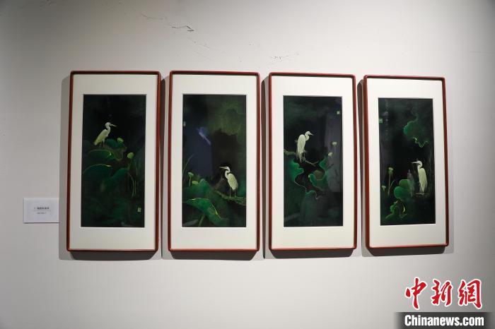 12月17日,中国纸上刀绘艺术作品展在沈阳博物馆展出,此次展览集中展示了王静的约40幅纸上刀绘精品力作。图为观众在观看展出的作品《一路连科》系列。中新社记者于海洋 摄