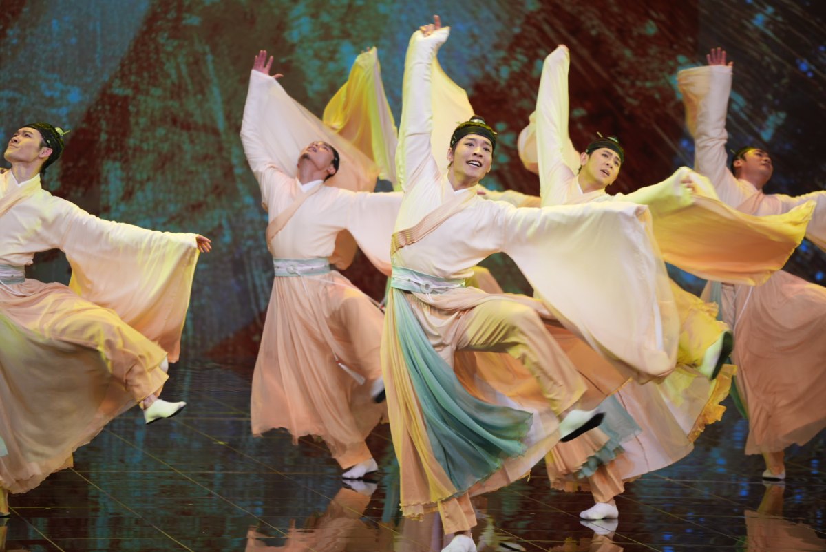男子群舞《月照四明》以王阳明、黄宗羲、王安石等先贤为创意来源,“书生”们着宽袍广袖,衣袂清扬,不畏寒暑,大步向前,走出了“春风得意马蹄疾”的少年意气,也走出了“愿以此身长报国”的赤子丹心。
