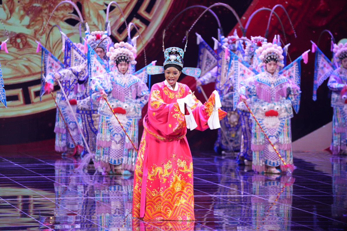 来自喀麦隆的刘汴京扮成包公,来了一段韵味醇正的豫剧《铡美案》,尼日利亚的馨兰和她的朋友们献上一段欢快黄梅戏《女驸马》,来自英国的菲比则化身“贵妃”,献唱一段大气的京歌《梨花颂》。