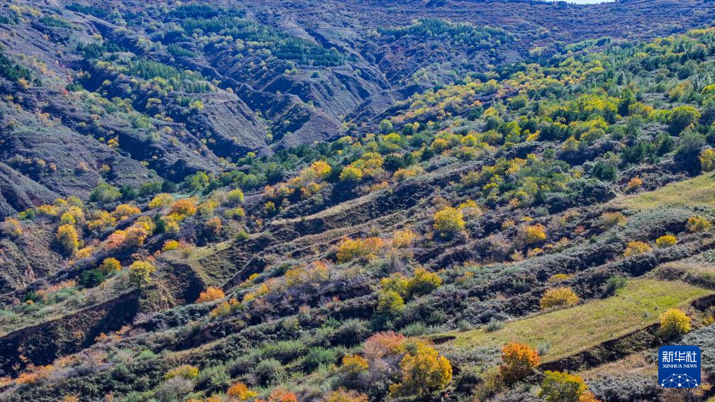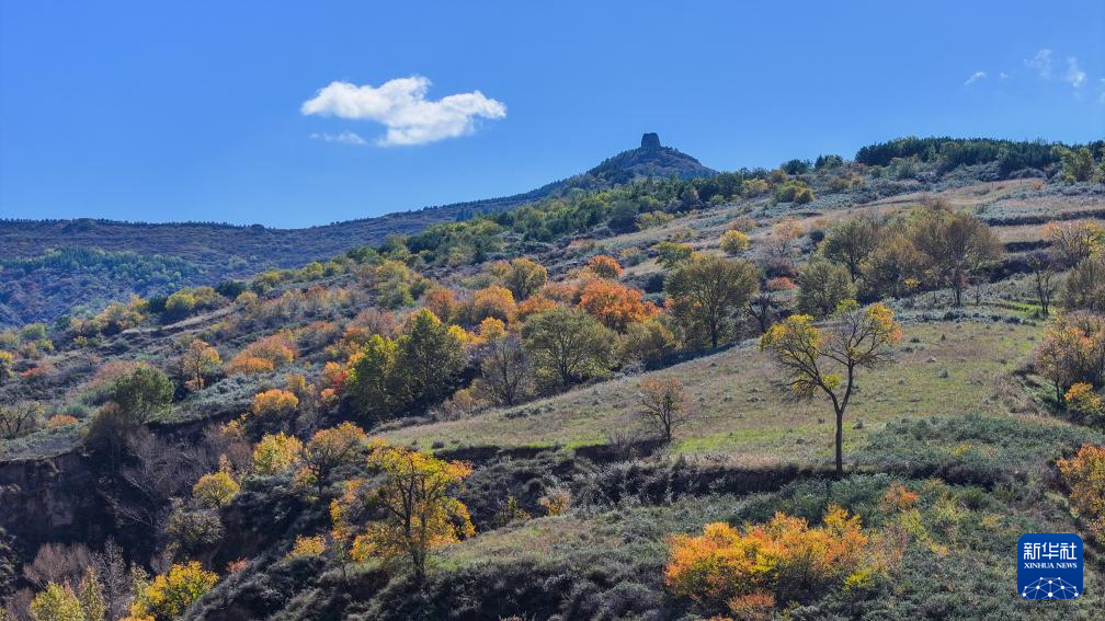 这是10月2日拍摄的好汉山明长城国家文化公园内的明长城小元峁段遗址(无人机照片)。
