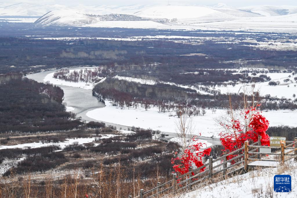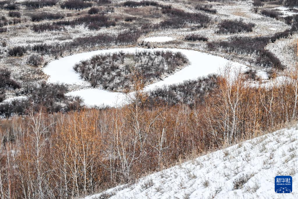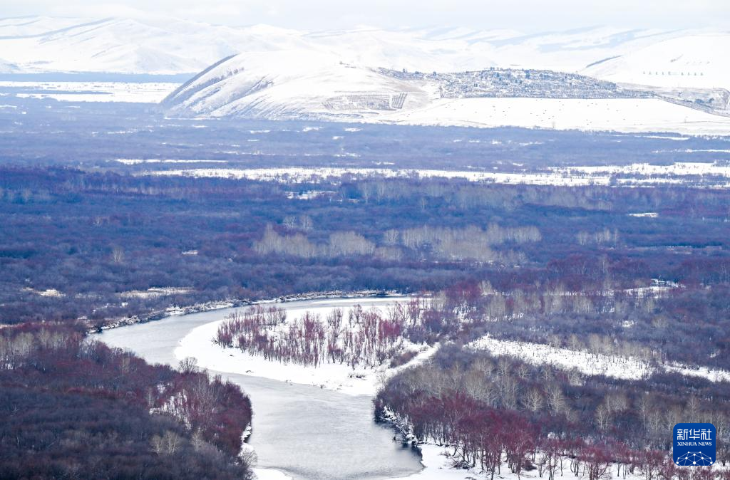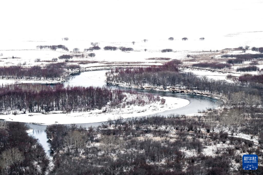 近日,位于内蒙古呼伦贝尔市的额尔古纳湿地迎来降雪。白雪覆盖下,河流蜿蜒流淌,景色如梦如幻。