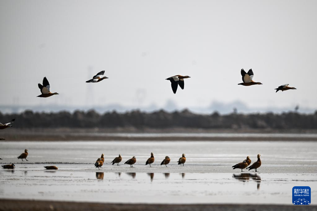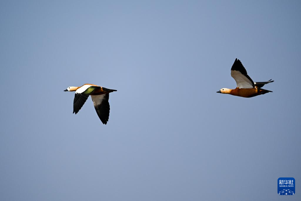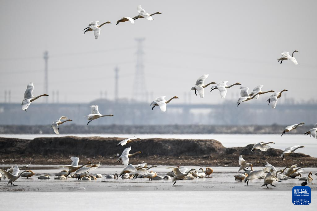 随着天气回暖,大批候鸟飞抵内蒙古呼和浩特市土默特左旗海流水库。候鸟时而休憩觅食,时而展翅飞舞,给当地带来勃勃生机。