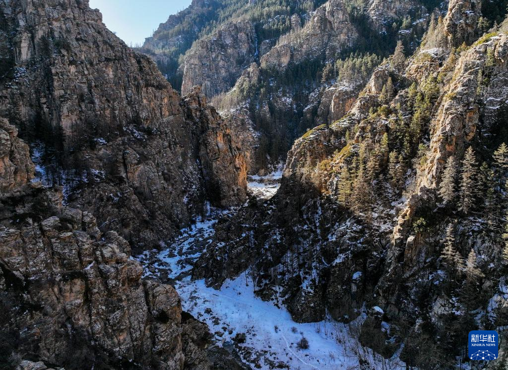 初春时节,在内蒙古贺兰山国家级自然保护区内,积雪渐渐消融,马鹿、岩羊等野生动物在山间出没。