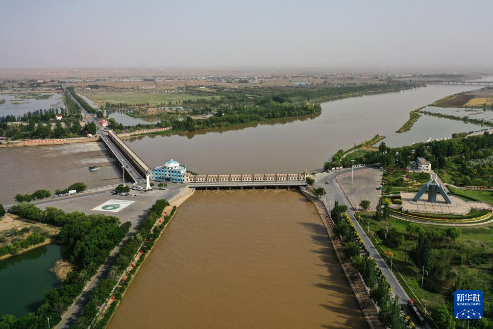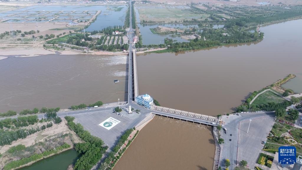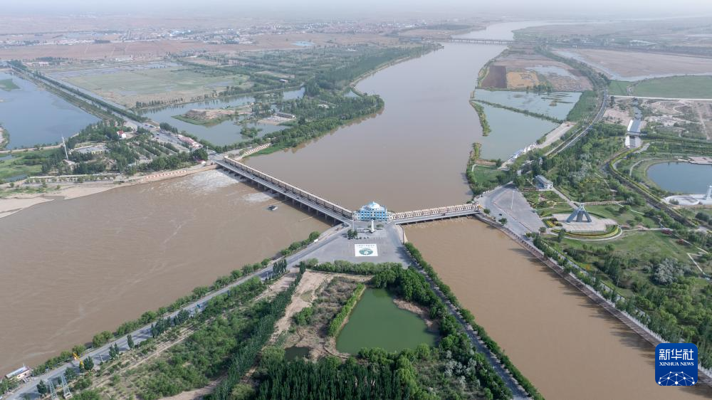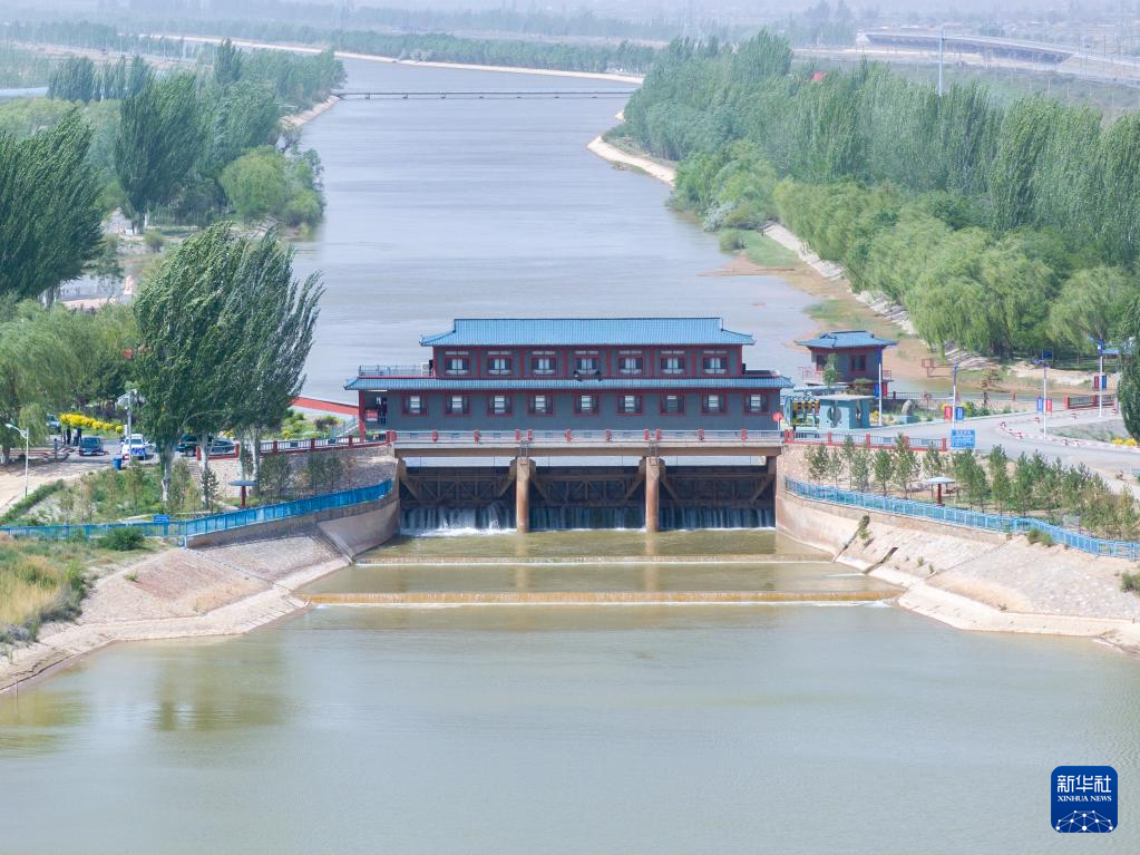 这是5月28日拍摄的内蒙古巴彦淖尔市临河区境内的总干渠第二分水枢纽(无人机照片)。