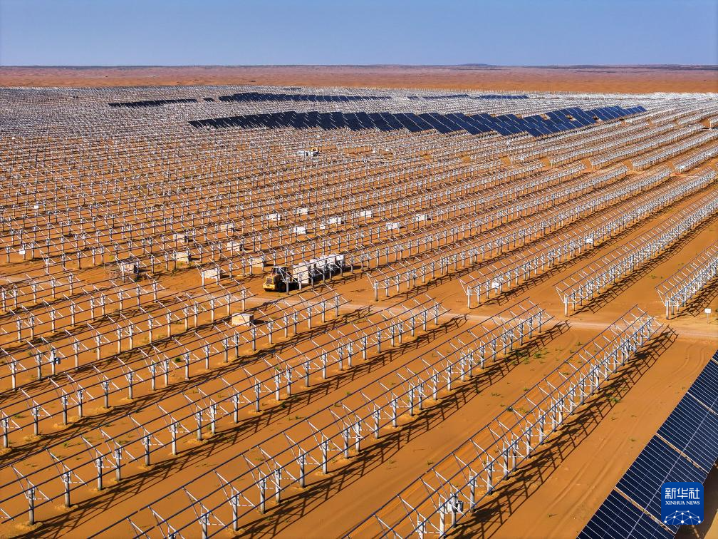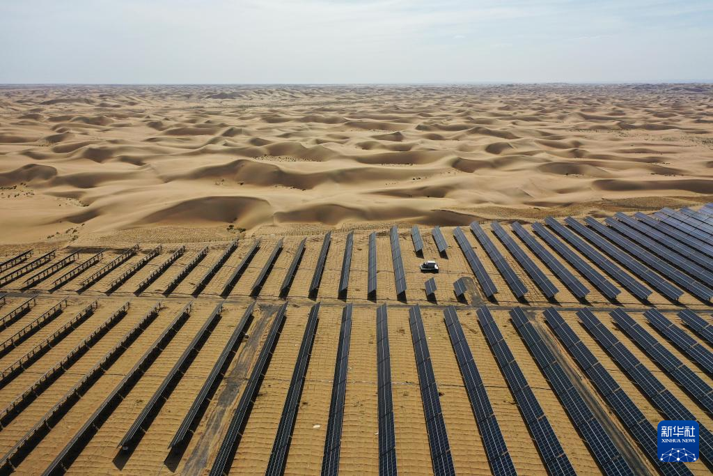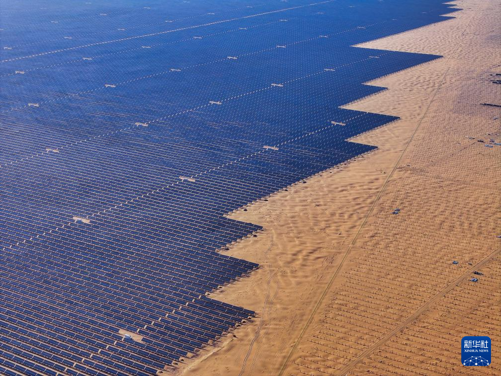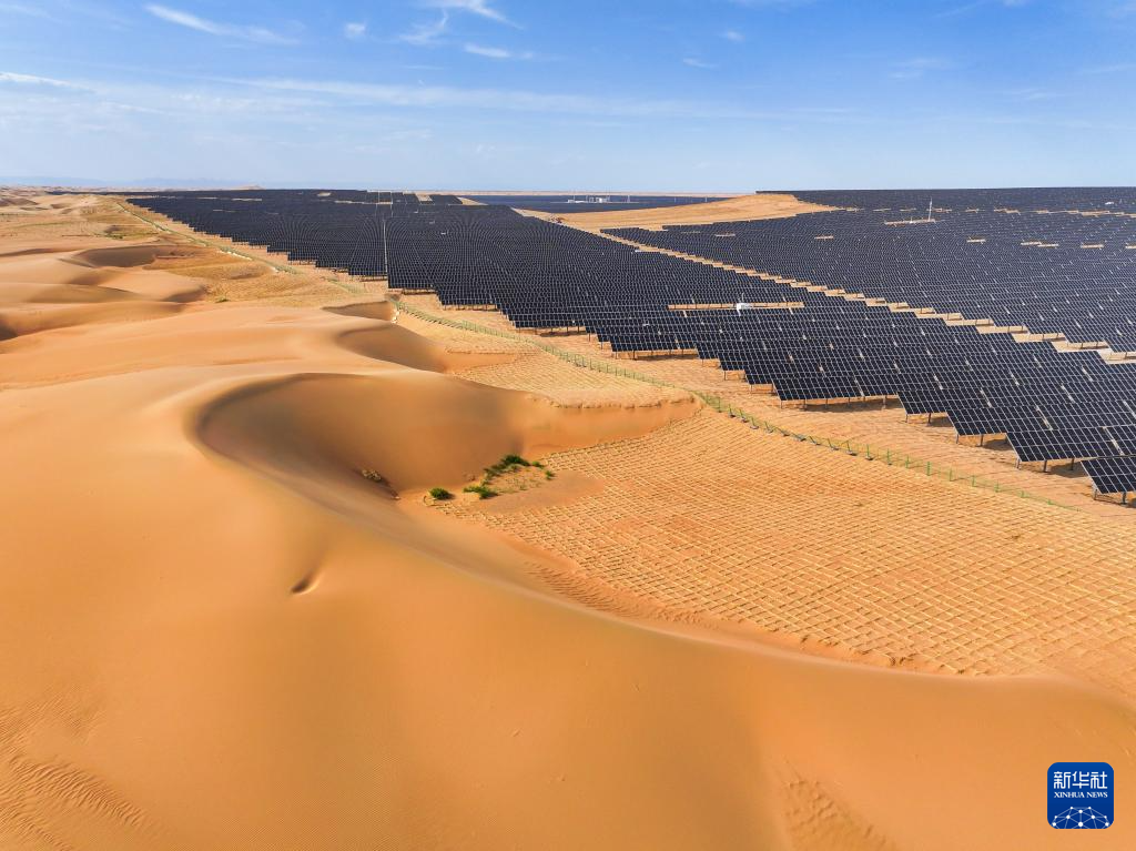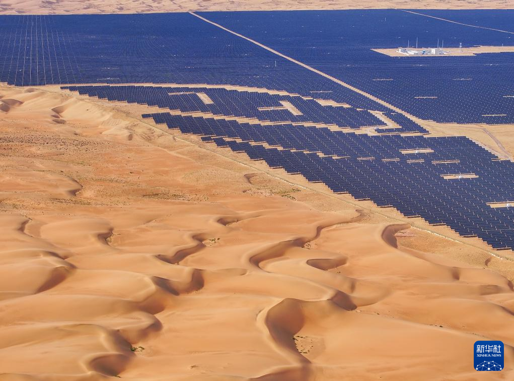 近两年来,内蒙古全力打好黄河“几字弯”攻坚战,累计完成治理面积1489万亩。在库布其沙漠、乌兰布和沙漠,“光伏治沙”模式被广泛运用,沙海中出现了一片片涌动着“绿能”的“蓝海”。