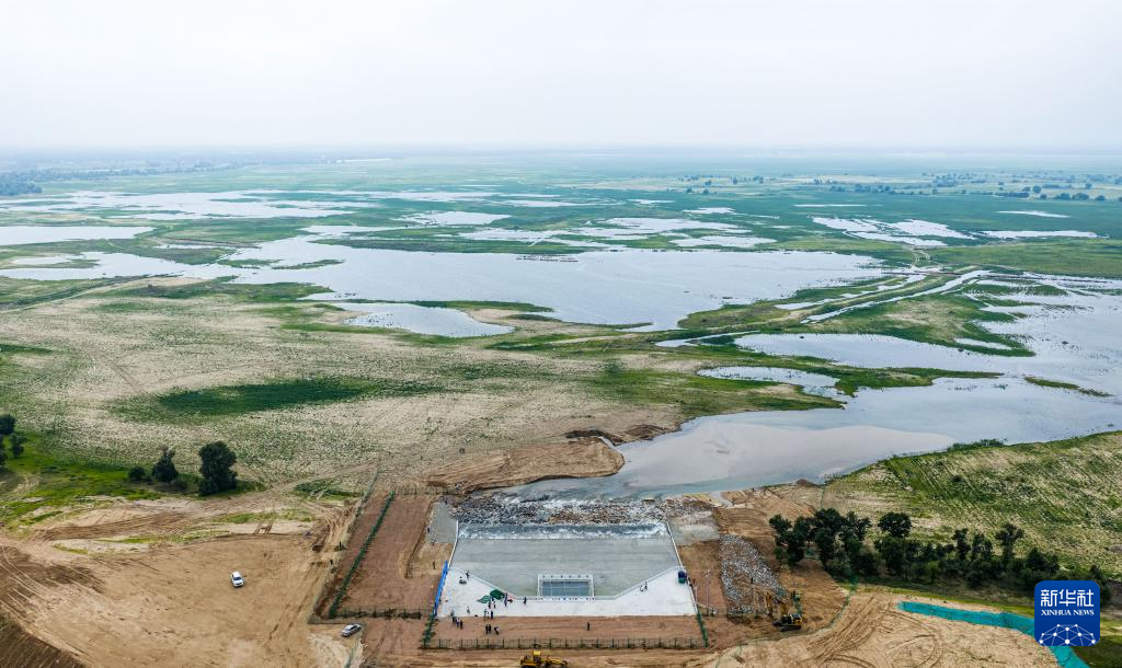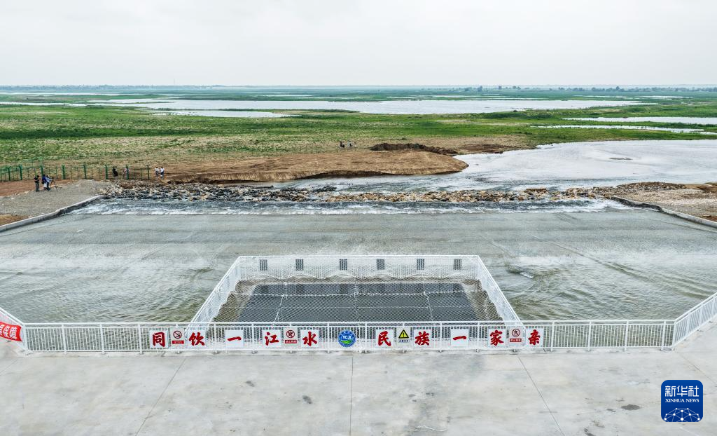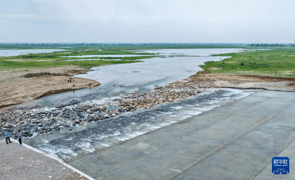 6月30日拍摄的引绰济辽工程通辽市莫力庙水库出水口(无人机照片)。
