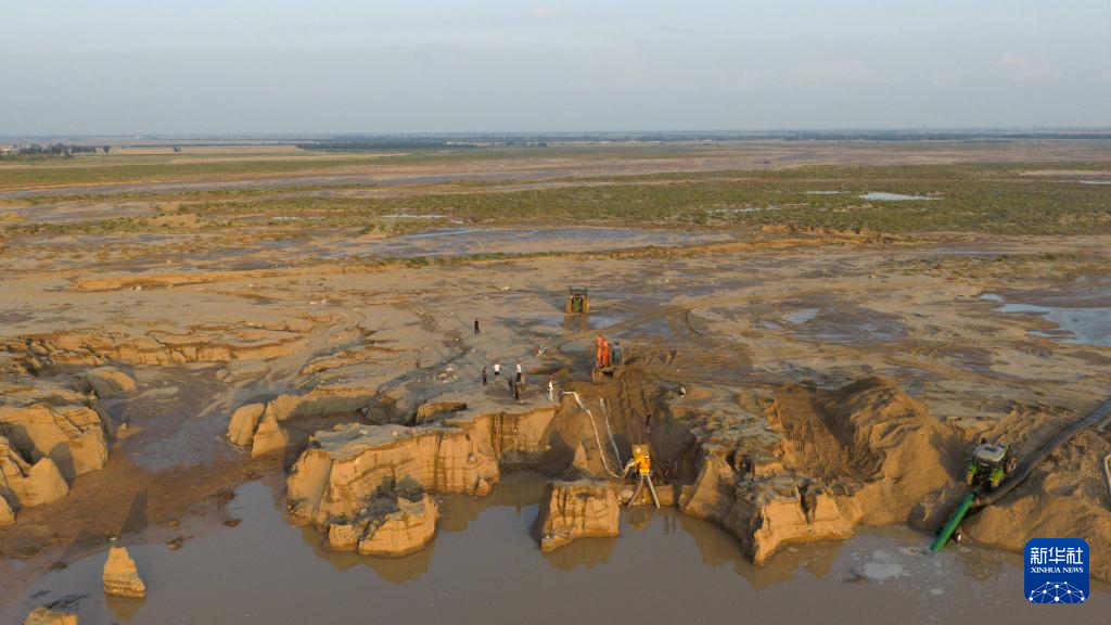 8月17日,在内蒙古巴彦淖尔市乌拉特后旗乌盖苏木东乌盖沟,工作人员开展搜救(无人机照片)。