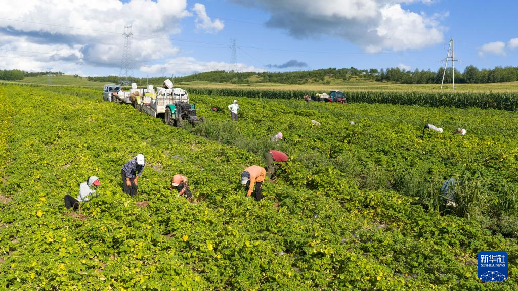 8月24日,在内蒙古呼伦贝尔市莫力达瓦达斡尔族自治旗尼尔基镇乌尔科村,村民在田里采摘黄菇娘果。