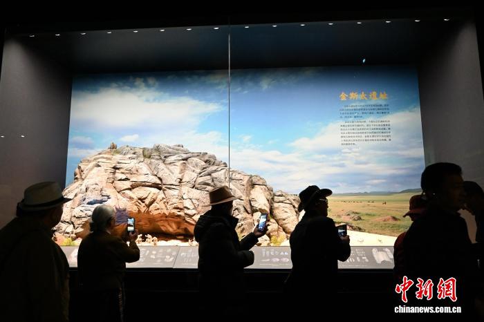 10月12日,内蒙古呼和浩特市,海外归国定居藏胞在内蒙古博物院了解金斯太洞穴遗址。当日,“侨连五洲·海外归国定居藏胞代表人士国情教育活动”在呼和浩特进入第一天行程。40余位海外归国定居藏胞代表,接下来将用近一周时间,在呼和浩特、包头、鄂尔多斯3地,直观了解内蒙古的人文历史、生态建设与现代产业等方面内容。中新社记者刘文华 摄