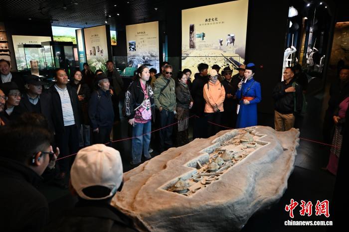 10月12日,内蒙古呼和浩特市,海外归国定居藏胞在内蒙古博物院了解二道井子遗址。当日,“侨连五洲·海外归国定居藏胞代表人士国情教育活动”在呼和浩特进入第一天行程。40余位海外归国定居藏胞代表,接下来将用近一周时间,在呼和浩特、包头、鄂尔多斯3地,直观了解内蒙古的人文历史、生态建设与现代产业等方面内容。中新社记者刘文华 摄