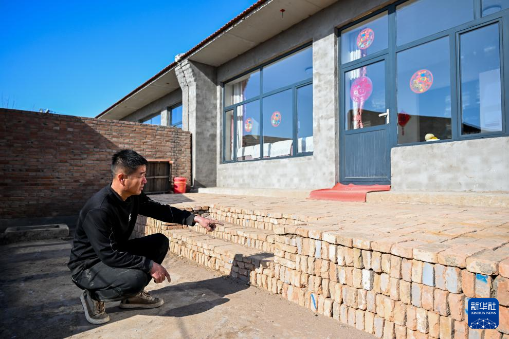 2月12日,村民张瑞军介绍房屋地基情况。为避免房屋遭遇水淹,政府部门在帮扶建设新房时将房屋地基抬高了约50厘米。