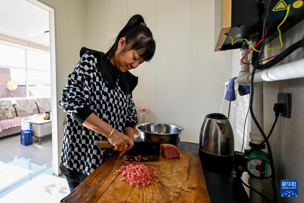2月12日,村民张瑞军的妻子武红利在家中备菜。