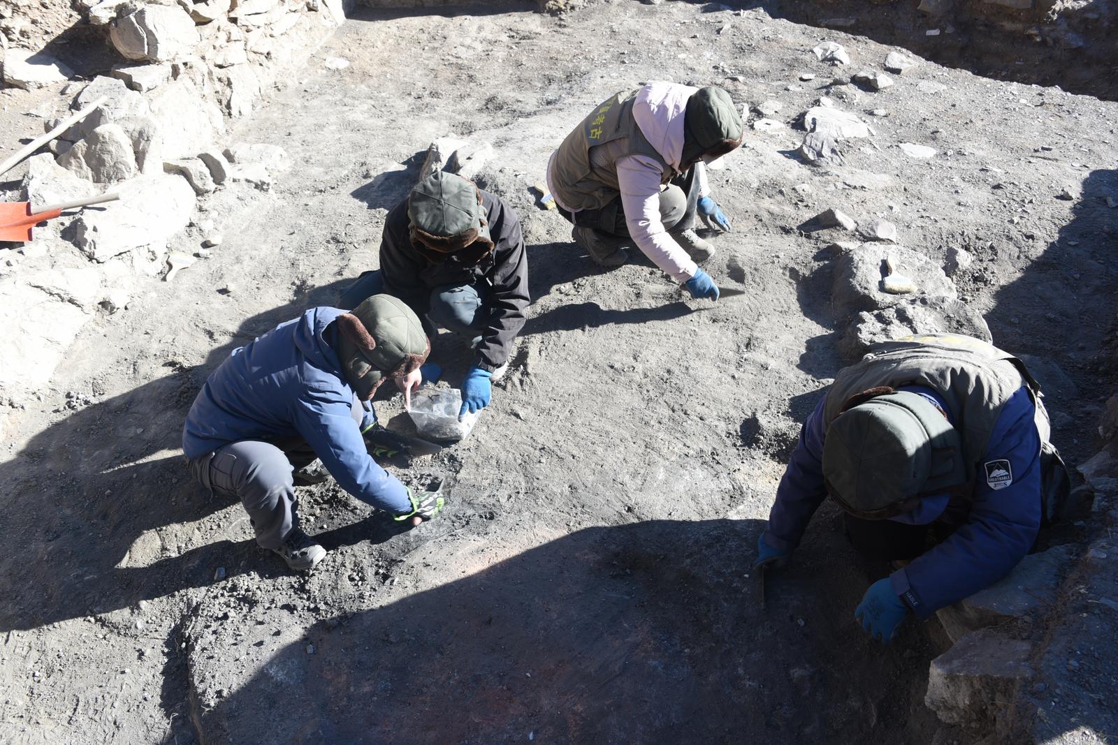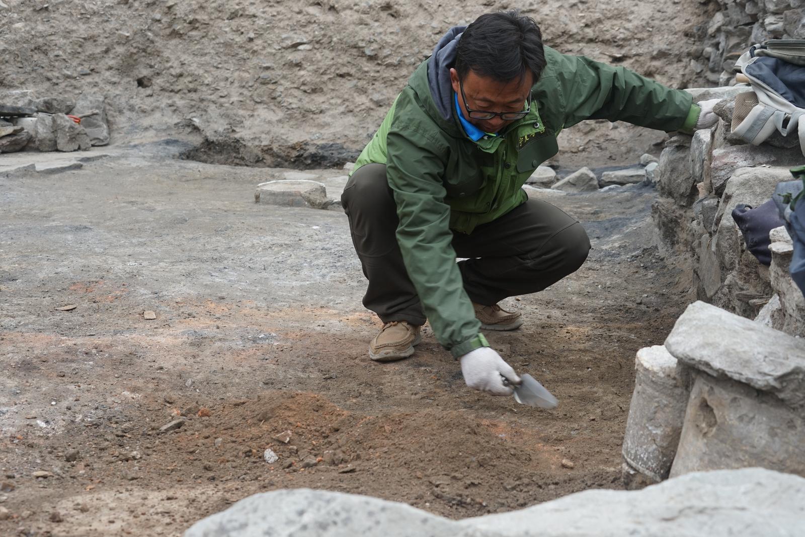项目负责人朱存世清理作坊区。(宁夏文物考古研究所供图)
