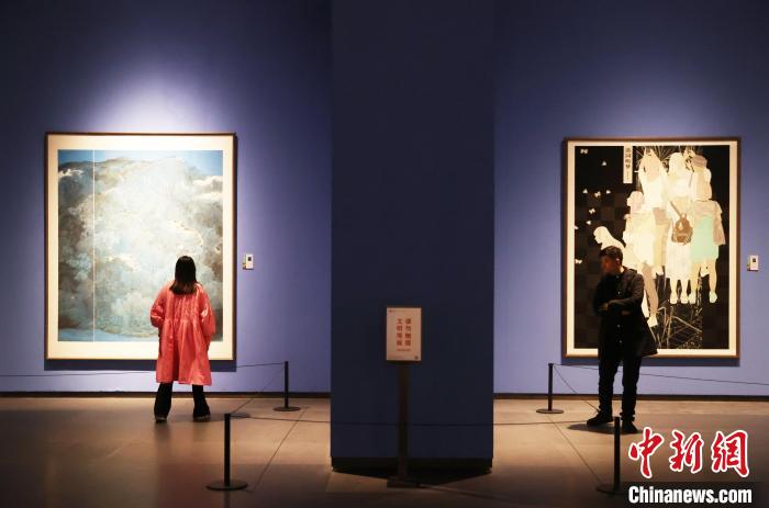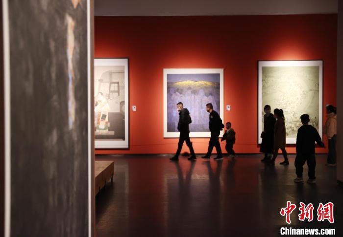 3月16日,宁夏银川,市民参观美术展。近日,“中国民族美术双年展民族地区巡展”(银川站)在宁夏美术馆举行。此次银川站的巡展秉持“展览与美育相结合”理念,展出了从“第五届中国民族美术双年展”中精选出具有代表性的100幅作品,集中展示了党的十八大以来各民族多彩生活面貌和丰富文化形态,展现了中华民族的共同精神追求,反映了全国民族地区的时代进步。中新社记者于晶 摄