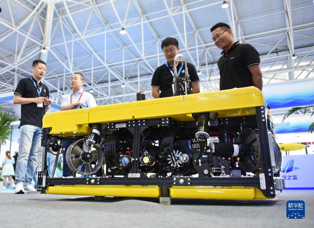 6月28日,参会者在展会上参观“水下滑翔机”。