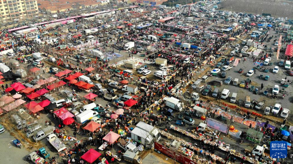 新春佳节将至,青岛市西海岸新区的泊里大集生意红火,年味浓郁。