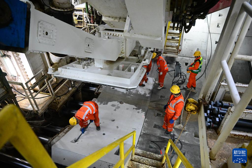 2月19日,青岛胶州湾第二隧道工程南线主隧道盾构段,中铁十四局建设者在海平面下73米进行管片拼装作业。