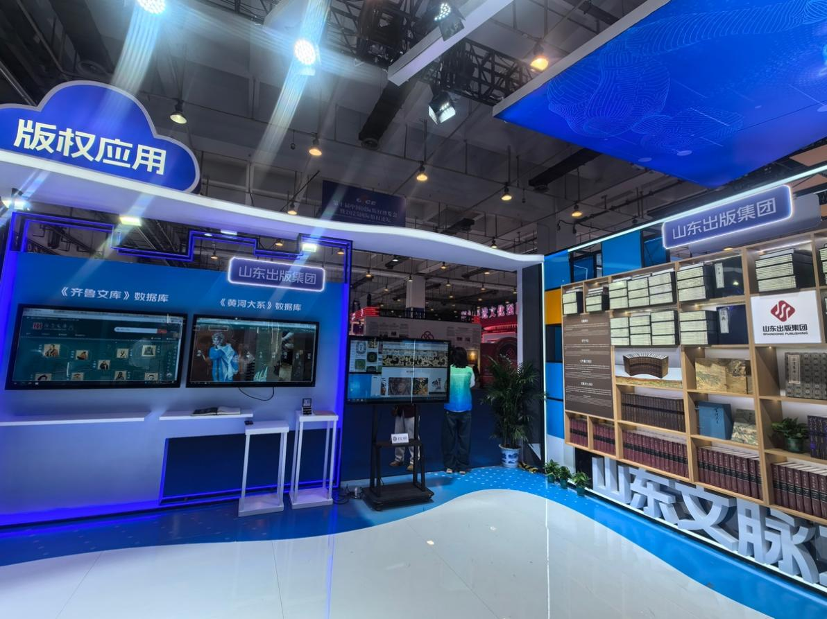 版博会上,山东出版集团重点展示了“山东文脉”工程——《儒典》《齐书》《齐鲁文库》《黄河大系》,并集中展示了近年来深耕数字版权领域的核心项目,包括纹明——中国图案数字资源平台、《齐鲁文库》数据库、《黄河大系》数据库、山东省数字融合版权交易中心等,充分彰显集团在版权创新与数字化转型中的扎实成效。