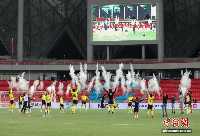 图为中国明星足球队队员在比赛中。中新社记者 马铭言 摄