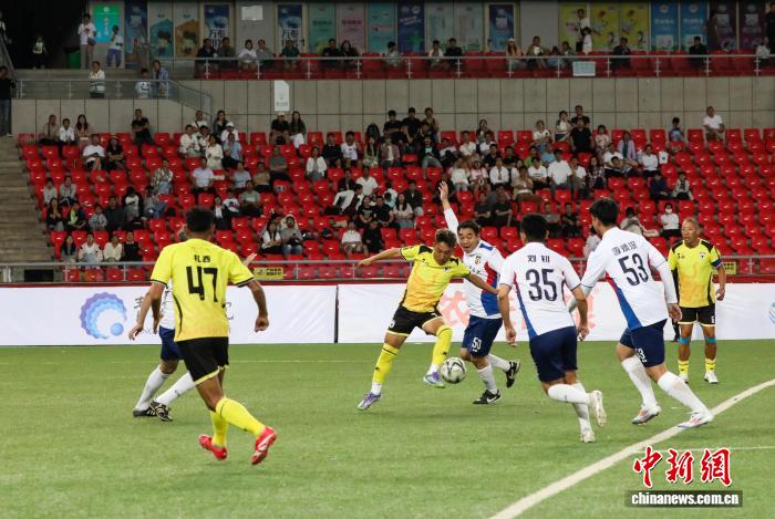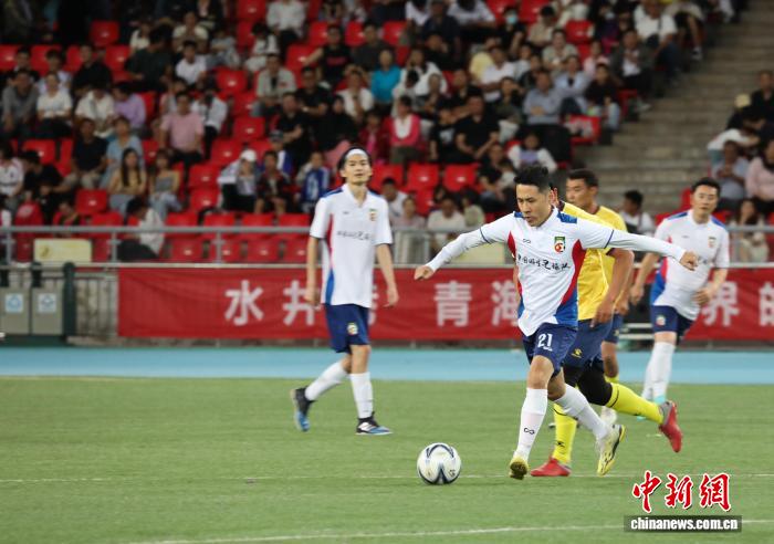 图为西宁雪豹队(黄衣)与中国明星足球队在比赛中。中新社记者马铭言 摄