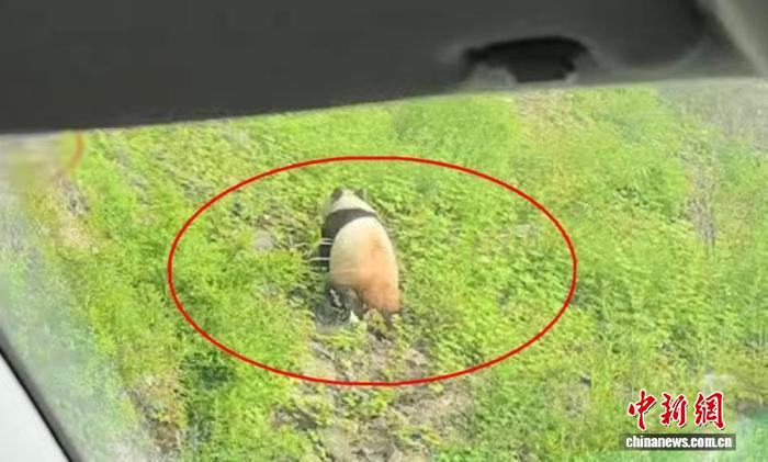 中新网雅安8月6日电 (刘刚王思芦)8月5日,在四川省雅安市宝兴县,前来避暑的外地游客唐女士一家在夹金山公路旁,偶遇一只野生大熊猫外出“溜达”。
