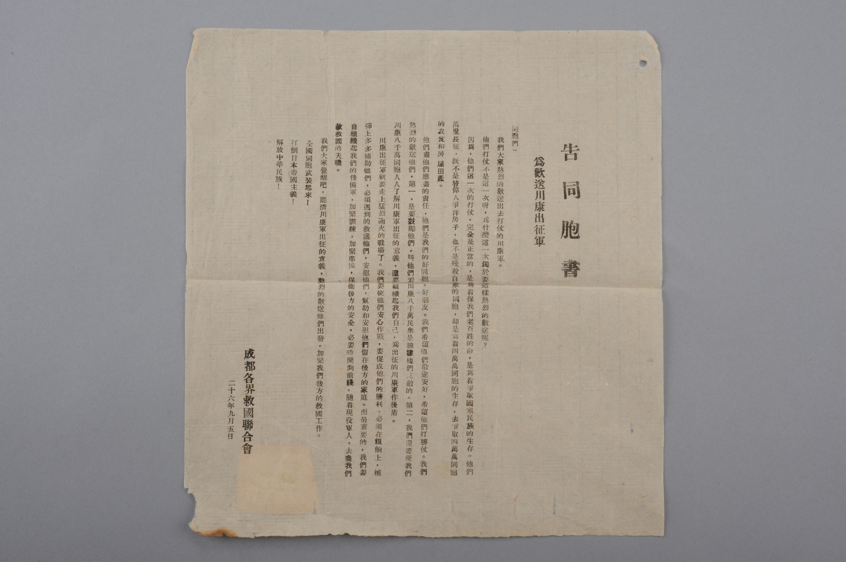 8月22日12点,让我们一起走进四川博物院,共看川渝儿女用热血在历史长卷写下的壮烈诗篇!共同透过斑驳的文物,触摸永不褪色的抗战精神!