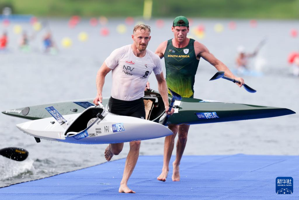 8月9日,丹麦选手彼得森(左)和南非选手洛夫莫尔在比赛中。最终,他们分别获得冠军、亚军。