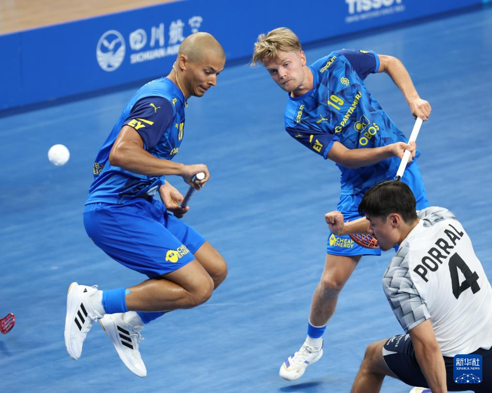 当日,在2025年成都世运会软式曲棍球男子A组预赛中,瑞典队11比1战胜菲律宾队。