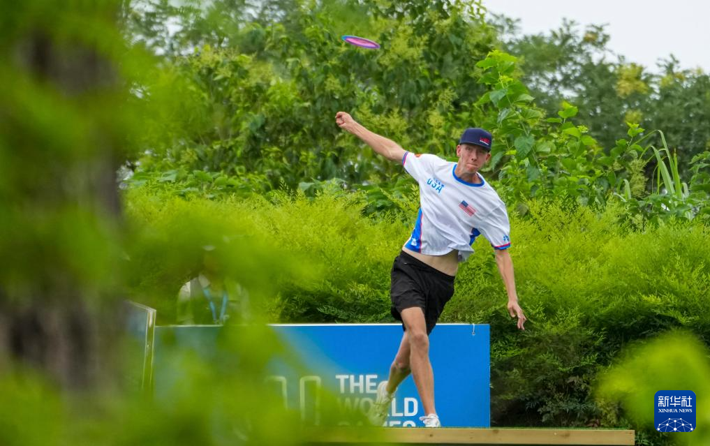 8月9日,美国队选手布尔在比赛中掷飞盘。最终,美国队战胜爱沙尼亚队,晋级决赛。