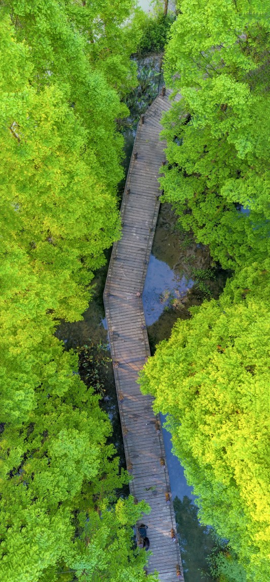 栈道蜿蜒,绿荫低垂。古寺的钟声与鸟鸣相和,秋日的惬意时光在白塔湖悄然铺展,顺着“竹艺福道”长坂坡入口处,游览至白塔湖大小金滩,在这里享受惬意假期时光。
