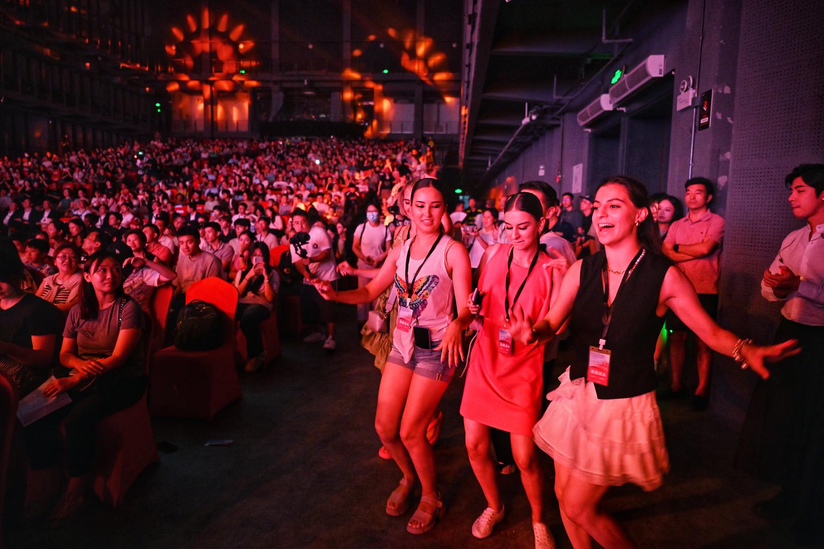 2024年7月26日,成都市,2024成都国际友城青年音乐周,台下观众和舞台互动。(王效 摄)
