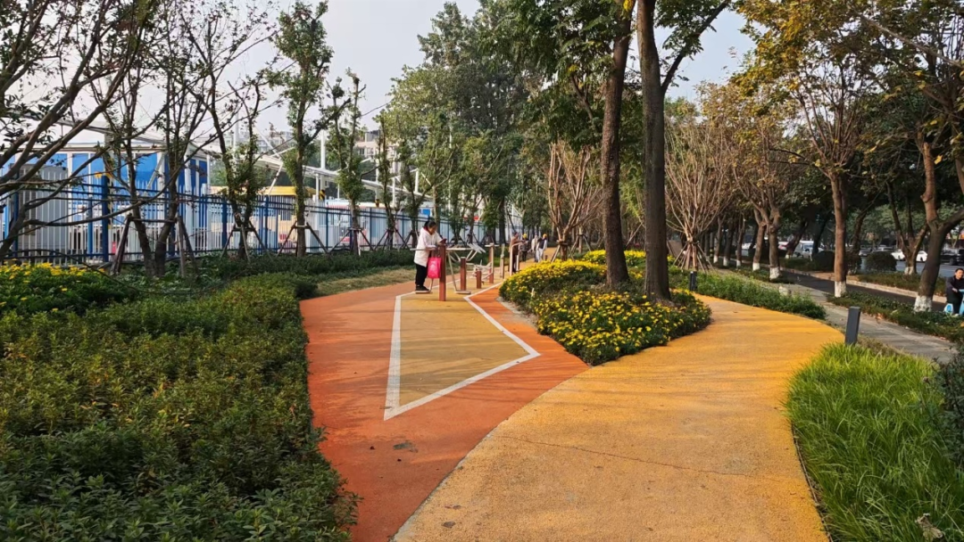 在武侯区武青南路绿道,记者看到,这条全长约2.5公里的路线中,沿线修建了体育健身、儿童游乐等多种设施,同时还搭配常绿落叶、观叶观花乔木等景观打造,从而满足市民绿色出行和休闲健身需要。