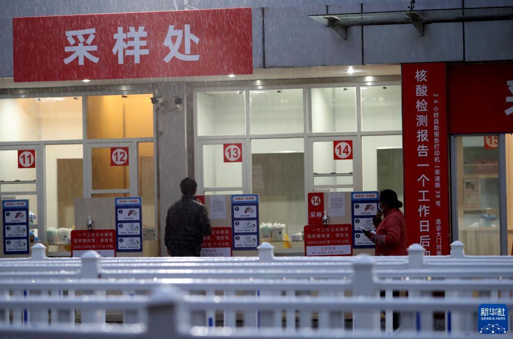 3月31日,市民在上海市闵行区中心医院的核酸采样点进行检测。