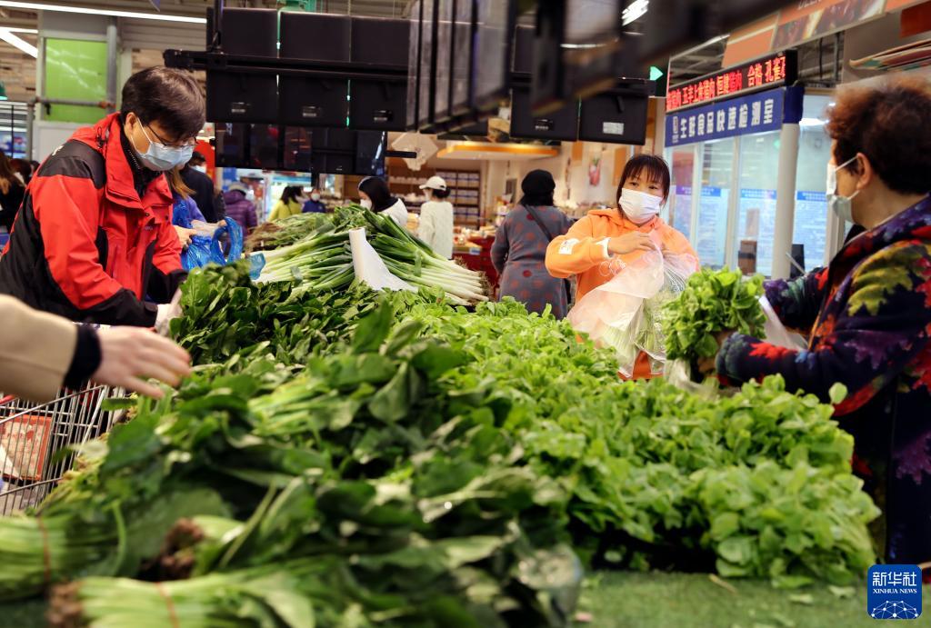 3月31日,在上海市普陀区的一家超市内,市民在购买蔬菜。