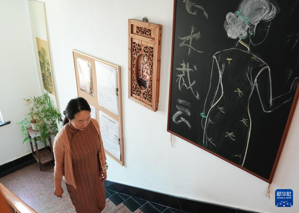 4月28日,王颖走在心禾裁云旗袍工作室内。
